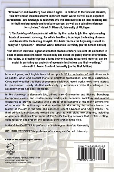 Introduction to the Third Edition -- Foundations of Economic Sociology -- The Economy as Instituted Process -- Economic Action and Social Structure: The Problem of Embeddedness -- The Impact of Social Structure on Economic Outcomes -- Max Weber's Central Text in Economic Sociology -- The Forms of Capital -- Embeddedness and Immigration: Notes on the Social Determinants of Economic Action -- The Sociology of Markets -- The Bazaar Economy: Information and Search in Peasant Marketing -- Human Values and the Market: The Case of Life Insurance and Death in 19th-Century America -- The Transformation of Morals in Markets: Death, Benefits, and the Exchange of Life Insurance Policies -- Economic and Sociological Approaches to Gender Inequality in Pay -- Non-Contractual Relations in Business: A Preliminary Study -- Social Structure and Competition in Interfirm Networks: The Paradox of Embeddedness -- What Is Sociological About Banks and Banking? -- Constructing a Market, Performing a Theory: The Historical Sociology of a Financial Derivatives Exchange -- The Sociology of Firms and Industries -- Group Dynamics and Intergroup Relations -- Men Who Manage -- Bureaucratic and Craft Administration of Production: A Comparative Study -- Processing Fads and Fashions: An Organization-Set Analysis of Cultural Industry Systems -- Inside-Out: Regional Networks and Industrial Adaptation in Silicon Valley and Route 128 -- Comparative and Historical Economic Sociology -- Weber's Last Theory of Capitalism: A Systematization -- Why the Economy Reflects the Polity: Early Rail Policy in Britain, France, and the United States -- E Pluribus Unum? Varieties and Commonalities of Capitalism -- Goodwill and the Spirit of Market Capitalism -- Developing Difference: Social Organization and the Rise of the Auto Industries of South Korea, Taiwan, Spain, and Argentina -- Transitions from State Socialism: A Property Rights Perspective