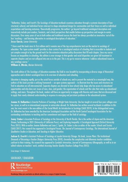The ninth edition of The Sociology of Education examines the field in rare breadth by incorporating a diverse range of theoretical approaches and a distinct sociological lens in its overview of education and schooling. Education is changing rapidly, just as the social forces outside of schools are, and to present the material in a meaningful way, the authors of this book provide a unifying framework-an open systems approach-to illustrate how the issues and structures we find in education are all interconnected. Separate chapters are devoted to how schools help shape who has access to educational opportunities and who does not; issues of race, class and gender; the organization of schools and the roles that make up educational settings, and more. Throughout the book, readers will have an opportunity to engage with theories and issues that are discussed and to apply their newly obtained understanding in response to emerging and persistent problems in the educational system. The new edition continues to be a critical point of reference for students interested in exploring the social context of education and the role education has in shaping our society. It is perfect for sociology of education and social foundations of education courses at the undergraduate or early graduate level.