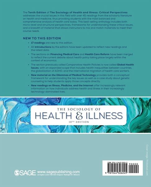 Now with SAGE Publishing! The Tenth Edition of The Sociology of Health and Illness: Critical Perspectives addresses the crucial issues in this field with over 45 readings (1/3 of which are new to this edition) from the scholarly literature on health and medicine, thus providing students with the most balanced and comprehensive analysis of health care today. This best-selling anthology from Peter Conrad and Valerie Leiter includes both micro-level and structural perspectives, frameworks for understanding these critical issues, and a breadth of material that allows instructors to mix and match materials to meet their course needs. New to this Edition 17 readings are new to this edition. All introductions by the editors have been updated to reflect new readings and the latest data. The sections on Financing Medical Care and Health Care Reform have been merged to reflect the current debate about health policy taking place largely within the context of financing. The section previously called Comparative Health Policies is now called Global Issues, with an expanded scope that includes health inequalities between countries, the globalization of ADHD, and the international migration of health care workers. New material on the dilemmas of medical technology provides both a conceptual framework for understanding the key issues as well as a case study about genetic counseling to help students apply those concepts directly. New readings on illness, medicine, and the internet offer increasingly relevant information on how individuals address health and illness in their increasingly technology-dominated lives. A new section on globalization helps students understand the impact of factors such as the international pharmaceutical industry, international migration, and the role of the internet.