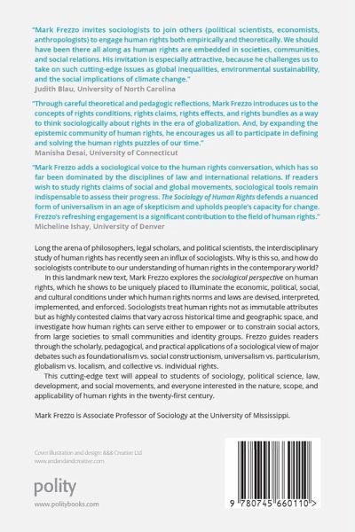 In this landmark new text, Mark Frezzo explores the sociological perspective on human rights, which he shows to be uniquely placed to illuminate the economic, political, social, and cultural conditions under which human rights norms and laws are devised, interpreted, implemented, and enforced. Sociologists treat human rights not as immutable attributes but as highly contested claims that vary across historical time and geographic space, and investigate how human rights can serve either to empower or to constrain social actors, from large societies to small communities and identity groups. Frezzo guides readers through the scholarly, pedagogical, and practical applications of a sociological view of major debates such as foundationalism vs. social constructionism, universalism vs. particularism, globalism vs. localism, and collective vs. individual rights.