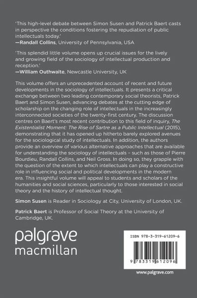 Introduction: Key Issues in the Sociology of Intellectuals; Simon Susen and Patrick Baert.- Chapter 1: Reflections on Patrick Baert's The Existentialist Moment: The Rise of Sartre as a Public Intellectual; Simon Susen.- Chapter 2: The Existentialist Moment Defended: A Reply to Simon Susen; Patrick Baert.