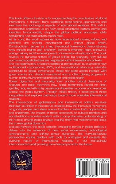A Burning Issue: The Sociological Analysis of International RelationsThis publication brings a new angle to the understanding of international relations. Rather than focusing solely on the state, it approaches global interactions sociologically. This shift helps us better appreciate how social structures, cultures, including norms and identities as systems of governance, culture in particular, shape politics on the global stage. It also brings to the fore the fundamental roles of non-state actors.As the title suggests, at the heart of this work is advanced globalization and the dynamic social construction of international norms as values and their impacts on world affairs. Constructivism, as a major supporting theory, vividly illustrates how shared beliefs or collective identities continually shape the behaviours, policies and relations of states towards one another or international institutions. The book delves into the dynamic and contested nature of cultural norms and social identity within international politics, keeping readers engaged and intrigued.By dissecting the roles of corporations, non-governmental organisations, and transnational advocacy networks in international relations, the text redirects attention from the traditional scope of global governance. These non-state actors, with their transformative potential, engage with states and shape international norms, often catalysing change in human rights, environmental sustainability, and public health on a global scale.Power disparities and inequality issues constitute another crucial dimension of the analysis. The book analyses the social structure within which class, gender, race, and ethnic divisions dominate inequality in power and resources in the world system. It analyses the governance of world politics through one focus of critical theory. It seeks to answer why these inequalities exist and how more just international relations can be achieved.The conjunction of globalisation and international politics is thoroughly discussed in this book. It looks at the opportunities and challenges that arise from people, goods, and ideas crossing borders easily. To readers who wish to understand the phenomena responsible for global change, especially its processes, the impacts of these processes on culture and social identity will leave them feeling well-informed about current global preoccupations.By analysing the latest developments in global politics, this book positions itself as a guide to the future of international relations. It engages with the impacts new social movements, technologies, and changes in power relations have. This perspective equips readers with the knowledge to anticipate and understand the changing scope of international relations in an interlinked world, empowering them for the future.