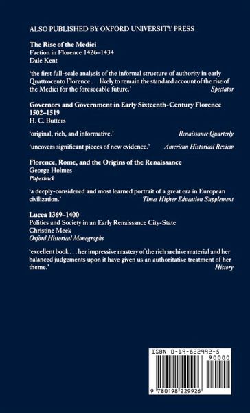 A study of politics in fifteenth-century Florence, Clarke's detailed account of the careers of two brothers, Tommaso and Niccolo Soderini, and their relationship with the Medici family opens up a new perspective on the political world of Renaissance Florence. The Soderini were at different times supporters and adversaries of the Medici, whose rise to power remains the subject of historical debate. Based on hitherto unpublished sources, particularly from the archives of Florence and Milan, this book examines the nature of the ascendancy of the Medici and opposition to them, the sources of their power, the operation of their system of patronage, the bonds connecting one of the most successful political elites in Renaissance Italy, and the development of the political institutions of the Florentine state.