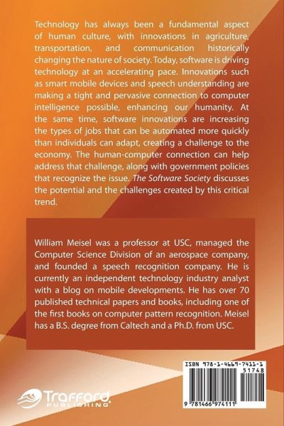 Software is driving most technology today, from PCs to mobile phones to thermostats. Software can evolve quickly, and that factor is driving an accelerating pace of change in technology. Software is also becoming more tightly connected to humans through advances in dealing with speech and human language, as well as being always available through mobile devices. As our connection to technology tightens, it drives rapid cultural evolution, in effect changing what it means to be human. Technological change driven by software also impacts our economy in basic ways, as computer technology drives more aspects of production, marketing, services, and sales. Software advances allow technology to do more tasks formerly requiring humans, creating efficiencies-productivity enhancements-that can grow the economy. On the other hand, the rapid changes are affecting the economy at a pace that is overcoming human abilities to adapt to the job opportunities available and companies' ability to adapt to rapid market changes. We are seeing today the impact of that fundamental economic change in persistent unemployment and in stress on some major companies that have historically been solid performers. The Software Society digs into these fundamental trends of software's impact on our culture and our economy. It explains the trend to use computer intelligence to enhance our human intelligence and discusses its potential and limitations. The book digs into the economic risk caused by automation moving faster than people's ability to adapt to the change, and suggests solutions to address this danger.