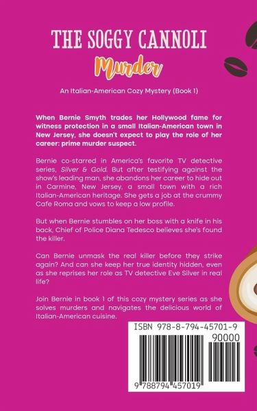When Bernie Smyth trades her Hollywood fame for witness protection in a small Italian-American town in New Jersey, she doesn't expect to play the role of her career: prime murder suspect. Bernie co-starred in America's favorite TV detective series, Silver & Gold. But after testifying against the show's leading man, she abandons her career to hide out in Carmine, New Jersey, a small town with a rich Italian-American heritage. She gets a job at the crummy Cafe Roma and vows to keep a low profile. But when Bernie stumbles on her boss with a knife in his back, Chief of Police Diana Tedesco believes she's found the killer. Can Bernie unmask the real killer before they strike again? And can she keep her true identity hidden, even as she reprises her role as TV detective Eve Silver in real life? Join Bernie in book 1 of this cozy mystery series as she solves murders and navigates the delicious world of Italian-American cuisine.