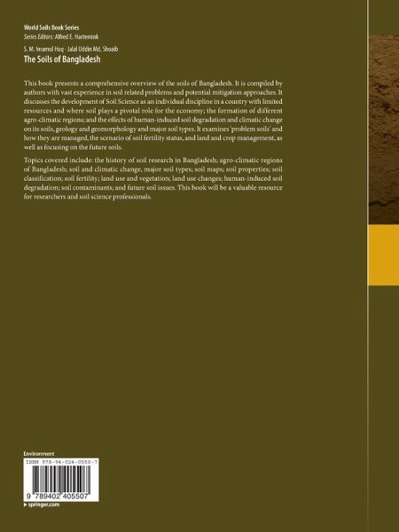 Preface.- Introduction.- History of Soil Research in Bangladesh.- Climate.- Geology and Geomorphology.- Major Soil Types.- Soil Properties.- Problem Soils.- Soil Classification.- Keys to Soil Series.- Soil Fertility.- Land Use and Vegetation.- Soil Management and Vulnerability.- Soils and Humans.- Future Soil Issues.- Appendix: Soil Series.- Authors' Biographies.- Index.