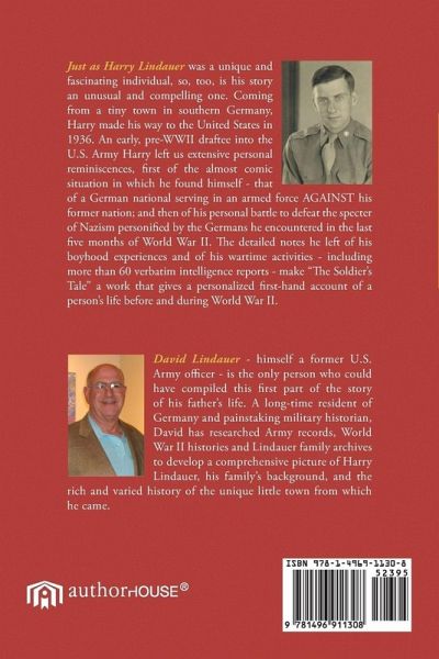 "The Soldier's Tale" (sub-titled "Being the Life and Times of Harry Lindauer, Colonel, U.S. Army, Retired) recounts the life of an extraordinary individual, from his birth in a small German village in 1918, through his immigration to the United States, and entry into the U.S. Army in 1941. Most of the story centers on Harry Lindauer's anecdotes and adventures during World War II. The present volume concludes with his discharge from active military service in December 1945 (and will be followed by another volume covering the years 1946 until his death in 2006). What makes "The Soldier's Tale" so unique and so vitally important as a first-hand account of the various aspects of Harry's life is his own sense of perspective and ability to project a situation so vividly. Through Harry's own narrative (as augmented by David, his son and the present author), we learn about details of Jewish life in small German towns during the first third of the Twentieth Century; the impact of the Nazi takeover of Germany; what it meant for a young German Jew to emigrate to America; and the day-to-day life of an American solider, first as he battles fatigue, cold, and boredom in a Canadian outpost and then, later, his exploits as a prisoner-of-war interrogator in Germany in 1945. Harry kept such detailed notes of his military intelligence activities in 1945 that the present volume has extensive appendices with the verbatim transcript of more than 70 intelligence reports which he filed or to which he contributed. The reader can learn first-hand about the taking of the Remagen Bridge, German technological developments in jet plane manufacture, V1 and V2 rocket construction, and experiments in television. These reports culminate with the first interview of the German officer who led the anti-Nazi revolt of Munich, Germany in late April 1945, Captain Rupprecht Gerngross. So here is "The Soldier's Tale", a fascinating adjunct to the study of Twentieth Century history, as recounted one one of history's many, many participants.