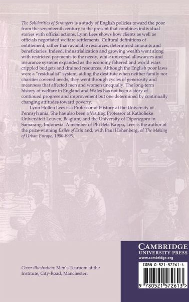 The Solidarities of Strangers is a study of English policies toward the poor from the seventeenth century to the present that combines individual stories with official actions. Lynn Lees shows how clients as well as officials negotiated welfare settlements. Cultural definitions of entitlement, rather than available resources, determined amounts and beneficiaries. Indeed, industrialization and growing wealth went along with restricted payments to the needy, while universal allowances and insurance systems expanded as the economy faltered and world wars crippled budgets and drained resources. Although the English poor laws were a 'residualist' system, aiding the destitute when neither family nor charities covered needs, they went through cycles of generosity and meanness that affected men and women unequally. The long term history of welfare in England and Wales has not been a story of continued progress and improvement but one determined by continually changing attitudes toward poverty.