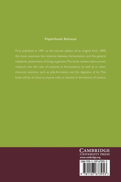 First published in 1901 as the second edition of an original from 1899, this book examines the relations between fermentation and the general metabolic phenomena of living organisms. The book reviews then-current research into the role of enzymes in fermentation as well as in other chemical reactions such as jelly-formation and the digestion of fat. This book will be of value to anyone with an interest in the history of science.