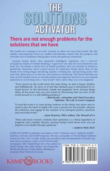 There are not enough problems for the solutions that we have. The world isn't coming to an end, contrary to what you may have heard. But the media's near-exclusive focus on conflict and disasters means that the progress and everyday acts of brilliance taking place across the globe go unnoticed. Jurriaan Kamp shows that optimism-intelligent optimism, not a rose-colored- glasses brand of wishful thinking-is good for not only for your mind but your body too. He details a whole host of health problems that can actually be linked to pessimism. Moreover, there is good reason for optimism. Kamp shows that on the whole we're living longer, becoming smarter, working less, and growing richer. Not only that, democracy is on the rise, and violence is declining. This book will help you tune out the media's focus on sensationalism and negativity and turn on your natural optimism so you'll drop into a "real world" that's richer than you ever imagined.