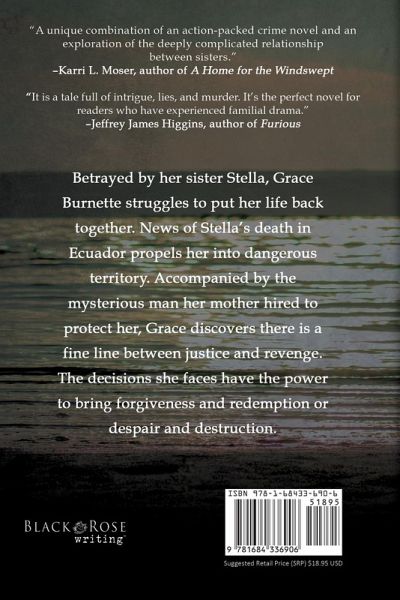 2025 American Legacy Book Awards - Finalist: Mystery/Suspense "It is a tale full of intrigue, lies, and murder. It's the perfect novel for readers who have experienced familial drama." -Jeffrey James Higgins, author of Furious Betrayed by Stella, the sister she adored, Grace Burnette struggles to put her previously well-ordered life back together. News of Stella's death in Ecuador propels Grace into a dangerous world of intrigue. Accompanied by the man her mother hired to protect her, Grace confronts her ex-fiance and Stella's widower. She joins forces with Stella's lover, Adelmo Balsuto, a man with a dangerous past, to bring her sister's killers to justice. Adelmo is more interested in revenge than justice, and Grace must choose how far she will go to settle the score for her sister. An explosive encounter with her sister's killers brings back a long-buried memory that could destroy her family. The choices Grace makes could cause forgiveness and redemption or despair and destruction.