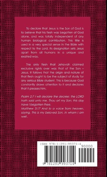This is a short treatise on the subject of the origin of the flesh and blood of Jesus. The book stresses the need to understand that the flesh and blood of our Lord has its origin in Jehovah alone. Christ is not consubstantial with humans, but with the Word of God/Holy Spirit. This belief is essential if our salvation is to be efficacious.