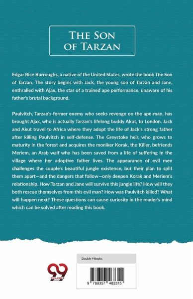 Edgar Rice Burroughs, a native of the United States, wrote the book The Son of Tarzan. The story begins with Jack, the young son of Tarzan and Jane, enthralled with Ajax, the star of a trained ape performance, unaware of his father's brutal background. Paulvitch, Tarzan's former enemy who seeks revenge on the ape-man, has brought Ajax, who is actually Tarzan's lifelong buddy Akut, to London. Jack and Akut travel to Africa where they adopt the life of Jack's strong father after killing Paulvitch in self-defense. The Greystoke heir, who grows to maturity in the forest and acquires the moniker Korak, the Killer, befriends Meriem, an Arab waif who has been saved from a life of suffering in the village where her adoptive father lives. The appearance of evil men challenges the couple's beautiful jungle existence, but their plan to split them apart-and the dangers that follow-only deepen Korak and Meriem's relationship. How Tarzan and Jane will survive this jungle life? How will they both rescue themselves from this evil man? How was Paulvitch killed? What will happen next? These questions can cause curiosity in the reader's mind which can be solved after reading this book.