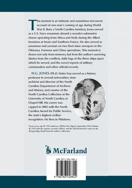 This memoir is an intimate and sometimes irreverent account of one man's coming of age during World War II. Born a North Carolina farmboy, Jones served as a U.S. Navy sonarman aboard a wooden submarine chaser operating from Africa and Sicily during the Allied invasions at Anzio and Southern France. He also served as sonarman and yeoman on two fleet mine sweepers in the Okinawa, Formosa and China operations. This memoir is drawn not only from memory, but from the author's surviving diaries from the conflicts, daily logs of the three ships upon which he served, and the secret reports of military commanders and other official records.
