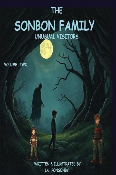 THREE MONTHS AFTER THE ATTACK ON THE SONBON FAMILY, BY THE EVIL TRESPASSER ... AND STILL THEY HAVEN'T FOUND THE CREATURE WHO DID IT, SO THE SONBON FAMILY ARE VERY EDGY AND WORRIED. HOWEVER, THEIR PETS AREN'T INTERESTED IN THAT, ... AS PIUS CONTINUES TORMENTING GREMLI, WANTING TO BE BOSS AND CAUSING ANIMAL DRAMAS CONSTANTLY; BUT IN THE CONFUSION OF A CAT AND DOG FIGHT, SARGETH STUMBLES ACROSS A CLUE AND A HIDDEN CAVE! THE THREE BOYS HOWEVER, KNOW SOMEONE OR SOMETHING IS LURKING DOWN THE BACK OF THEIR PROPERTY AND THEREFORE THEY LAY THREE TRAPS, TO SUS OUT WHO OR WHAT IT IS; THAT'S SECRETLY WANDERING ABOUT IN THE DARKER DEPTHS OF THEIR ACREAGE, ... IS IT A FRIEND OR A DREADFUL FOE? BUT WHAT A HUGE SURPRISE THEY GET, WHILE THEY LAY IN WAIT! THEN TINC'S 18TH BIRTHDAY PARTY PROVES TO BE A BIG HIT, WITH MICCA'S CRAZY FIRE CRACKERS AND ESPECIALLY WITH A VISIT FROM THE INFAMOUS AUNTIE BRIDGET AND HER VERY SPECIAL PRESENT, WHICH IS INTRIGUING AND IS ALSO JUST THE BEGINNING OF THE MYSTERIOUS JOURNEY THAT THEY ARE ALL DRAWN INTO. THE DOOR OF MYSTERY BEGINS TO OPEN WHEN AUNTIE BRIDGET TELLS TINC ABOUT THE TEN MISSING SONBON FAMILY MEMBERS, THAT HAVE DISAPPEARED ON THE THEIR PROPERTY, OVER THE SPAN OF TEN GENERATIONS, ... WHAT HAS HAPPENED TO THEM? ... WHAT IS GOING ON? EVEN SO, WITH HEARING THIS WORRYING NEWS, THERE ARE STILL PLENTY OF LAUGHS IN THIS INTRIGUING TALE, ALSO, ... ADD IN TO THE MIX, A LATE NIGHT GAME OF CRICKET AND WITH A BIG FAMILY, THERE IS ALWAYS SURE TO BE A LOT OF ACTION! HOWEVER, IN THE DARK EARLY HOURS OF THE NEXT MORNING, PIUS ALERTS THE BOYS TO A DREADED FOE, WHO'S RETURNED, ... DOWN OVER BANK!!! A BIG FIGHT FOLLOWS AND THE DREADED NAPI IS A VERY STRONG CREATURE TO BATTLE, SO WILL THEY REALLY LOSE MICCA THIS TIME; WILL HE BE KIDNAPPED, OR WILL A SMALL, LUMINOUS, SUPER-POWERED FRIEND ASSIST THEM ONCE AGAIN! NEVERTHELESS, ... IT IS MOST INCREDIBLY STRANGE, THAT THE UNUSUAL HAPPENINGS THAT CONTINUE TO OCCUR; TO THE SONBON CLAN, OVER THE SPAN OF MANY GENERATIONS ... (WHETHER THE OCCURANCES PROVE TO BE ENCHANTED OR EVIL); WELL ... THERE JUST DOESN'T SEEM TO BE ANY ANSWERS, AS TO WHY THIS PARTICULAR FAMILY ARE BEING TARGETED, ... FOR HUNDREDS OF YEARS? THE BIG MYSTERY IS, ... THAT MANY OF THE DRAMAS THAT HAVE HAPPENED TO THIS INTRIGUING FAMILY, ... (ESPECIALLY INCLUDING THE TEN MISSING SONBON FAMILY MEMBERS FROM TEN GENERATIONS), ... WELL ASTONISHING IT IS, ... THAT THEY NOT ONLY VANISHED, ... NEVER TO BE SEEN AGAIN, ... BUT ALL OF THEM, WENT MISSING, 'DOWN OVER THE BANK!!!'