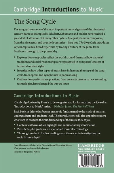 The song cycle was one of the most important musical genres of the nineteenth century. Famous examples by Schubert, Schumann and Mahler have received a great deal of attention. Yet many other cycles - by equally famous composers, from the nineteenth and twentieth centuries - have not. The Song Cycle introduces key concepts and a broad repertoire by tracing a history of the genre from Beethoven through to the present day. It explores how song cycles reflect the world around them and how national traditions and social relationships are represented in composers' choice of texts and musical styles. Tunbridge investigates how other types of music have influenced the scope of the song cycle, from operas and symphonies to popular song. A lively and engaging guide to this important topic, the book outlines how performance practices, from concert customs to new recording technologies, have changed the way we listen.