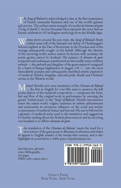 "The Song of Roland" is acknowledged today as the first masterpiece of French vernacular literature and one of the world's greatest epic poems. The earliest extant example of a medieval "chanson de geste" ("song of deeds"), its four thousand lines represent the most famous literary celebration of Carolingian mythology from the Middle Ages. Written down around the year 1090, the Song of Roland's finely crafted verses tell of the betrayal and defeat of Charlemagne's beloved nephew at the Pass of Roncevaux in the Pyrenees and of the revenge subsequently sought on his behalf. Although the identity of the surviving work's author cannot be known with certainty, his poetic genius cannot be doubted. His mastery of chanson de geste compositional techniques transformed an historically minor military setback - the ambush and slaughter of the great emperor's rearguard by a band of Basque highlanders in August 778 - into the most immediately popular and subsequently cherished artistic expression of medieval chivalry, kingship, national pride, feudal and Christian service in the Western world. Michael Newth's new verse translation of the "Chanson de Roland" - the first in English for over fifty years to preserve the full poetic diction of the medieval composition - recaptures the form, feel and flow of the original work in performance by restoring the genre's "verbal music" to the *Song* of Roland. Newth's introduction traces the extant work's origins, examines its artistic achievements and summarizes its enormous influence on the social and artistic consciousness of medieval France and beyond. His text is followed by a glossary of medieval terms used in the translation and suggestions for further reading about the Roland phenomenon and its surviving one hundred or so fellow chansons de geste. This translation of the "Chanson de Roland" meets the need for a new version of the great poem to illustrate its relevance and widen its appeal to English readers of the twenty-first century, and it also highlights its potential as a viable piece of performance art.