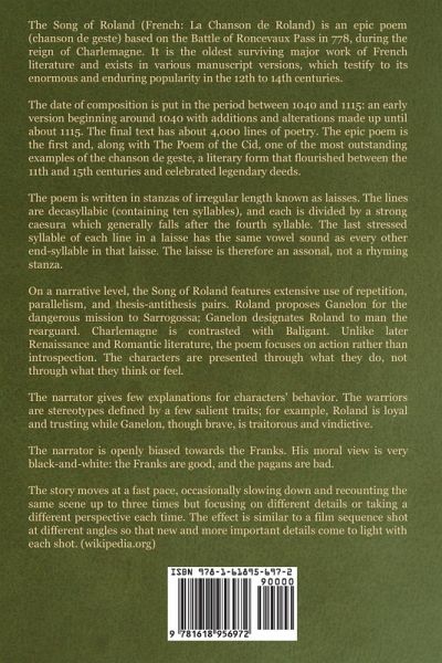 The Song of Roland (French: La Chanson de Roland) is the oldest surviving major work of French literature. It exists in various different manuscript versions, which testify to its enormous and enduring popularity in the 12th to 14th centuries. The oldest of these versions is the one in the Oxford manuscript, which contains a text of some 4,004 lines (the number varies slightly in different modern editions) and is usually dated to the middle of the twelfth century (between 1140 and 1170). The epic poem is the first and most outstanding example of the chanson de geste, a literary form that flourished between the eleventh and fifteenth centuries and celebrated the legendary deeds of a hero.
