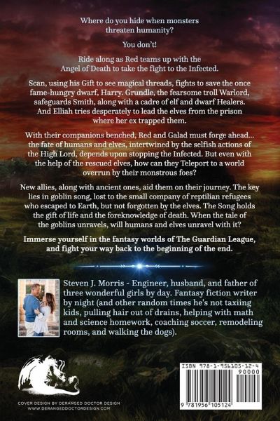 Where do you hide when monsters threaten humanity? You don't! Ride along as Red teams up with the Angel of Death to take the fight to the Infected. Scan, using his Gift to see magical threads, fights to save the once fame-hungry dwarf, Harry. Grundle, the fearsome troll Warlord, safeguards Smith, along with a cadre of elf and dwarf Healers. And Elliah tries desperately to lead the elves from the prison where her ex trapped them. With their companions benched, Red and Galad must forge ahead... the fate of humans and elves, intertwined by the selfish actions of the High Lord, depends upon stopping the Infected. But even with the help of the rescued elves, how can they Teleport to a world overrun by their monstrous foes? New allies, along with ancient ones, aid them on their journey. The key lies in goblin song, lost to the small company of reptilian refugees who escaped to Earth, but not forgotten by the elves. The Song holds the gift of life and the foreknowledge of death. When the tale of the goblins unravels, will humans and elves unravel with it? Immerse yourself in the fantasy worlds of The Guardian League, and fight your way back to the beginning of the end.