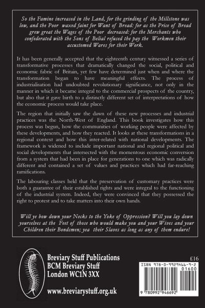 It has been generally accepted that the eighteenth century witnessed a series of transformative processes that dramatically changed the social, political and economic fabric of Britain, yet few have determined just when and where the transformation began to have meaningful effects. The process of industrialisation had undoubted revolutionary significance, not only in the manner in which it became integral to the commercial prospects of the country, but also that it gave birth to a distinctly different set of interpretations of how the economic process would take place. The region that initially saw the dawn of these new processes and industrial practices was the North-West of England. This book investigates how this process was begun, how the communities of working people were affected by these developments, and how they reacted. It looks at these transformations in a regional context and how this inter-related with national developments. The framework is widened to include important national and regional political and social developments that intersected with the momentous economic conversion from a system that had been in place for generations to one which was radically different and contained a set of values and practices which had far-reaching ramifications. The labouring classes held that the preservation of customary practices were both a guarantee of their established rights and were integral to the functioning of the industrial system. Indeed, they were convinced that they possessed the right to protest and to take matters into their own hands.