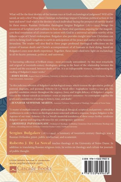 What will be the final destiny of the human race at God's eschatological judgment? Will all be saved, or only a few? How does Christian eschatology impact Christian political action in the here and now? And what is the destiny of each individual facing the prospect of earthly death? In these essays, Russian Orthodox theologian Sergius Bulgakov (1871-1944) brings the resources of Scripture and tradition to bear on these vital questions, arguing for the magnificent final restoration of all creatures to union with God in a universal salvation worthy of the infinite scope of Christ's redemption. Bulgakov also provides insight into how Christians can strive to bring God's kingdom to earth in anticipation of the peace and justice of the heavenly Jerusalem. The reader will also find in these pages profound theological reflections on the nature of human death and Christ's accompaniment of all humans in their dying, based on Bulgakov's own near-death experience. Together, these essays shed new light on eschatology in all its facets: personal, political, and universal.