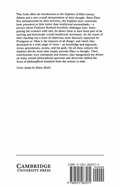 This book offers an introduction to the Sophists of fifth-century Athens and a new overall interpretation of their thought. Since Plato first animadverted on their activities, the Sophists have commonly been presented as little better than intellectual mountebanks - a picture which Professor Kerferd forcefully challenges here. Interpreting the evidence with care, he shows them to have been part of an exciting and historically crucial intellectual movement. At the centre of their teaching was a form of relativism, most famously expressed by Protagoras as 'Man is the measure of all things', and which they developed in a wide range of views - on knowledge and argument, virtue, government, society, and the gods. On all these subjects the Sophists did far more than simply provoke Plato to thought. Their contributions were substantial and serious; they inaugurated the debate on many central philosophical questions and decisively shifted the focus of philosophical attention from the cosmos to man.