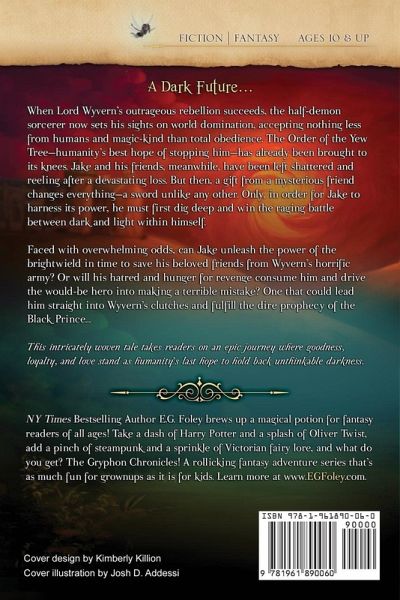 A Dark Future... When Lord Wyvern's outrageous rebellion succeeds, the half-demon sorcerer now sets his sights on world domination, accepting nothing less from humans and magic-kind than total obedience. The Order of the Yew Tree - humanity's best hope of stopping him - has already been brought to its knees. Jake and his friends, meanwhile, have been left shattered and reeling after a devastating loss. But then, a gift from a mysterious friend changes everything - a sword unlike any other. Only, in order for Jake to harness its power, he must first dig deep and win the raging battle between dark and light within himself. Faced with overwhelming odds, can Jake unleash the power of the brightwield in time to save his beloved friends from Wyvern's horrific army? Or will his hatred and hunger for revenge consume him and drive the would-be hero into making a terrible mistake? One that could lead him straight into Wyvern's clutches and fulfill the dire prophecy of the Black Prince... (798 pages / 300,770 words)