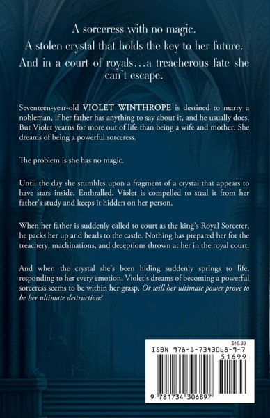 A sorceress with no magic. A stolen crystal that holds the key to her future. And in a court of royals...a treacherous fate she can't escape. Seventeen-year-old Violet Winthrope is destined to marry a nobleman, if her father has anything to say about it, and he usually does. But Violet yearns for more out of life than being a wife and mother. She dreams of being a powerful sorceress. The problem is she has no magic. Until the day she stumbles upon a fragment of a crystal that appears to have stars inside. Enthralled, Violet is compelled to steal it from her father's study and keeps it hidden on her person. When her father is suddenly called to court as the king's Royal Sorcerer, he packs her up and heads to the castle. Nothing has prepared her for the treachery, machinations, and deceptions thrown at her in the royal court. And when the crystal she's been hiding suddenly springs to life, responding to her every emotion, Violet's dreams of becoming a powerful sorceress seems to be within her grasp. Or will her ultimate power prove to be her ultimate destruction?