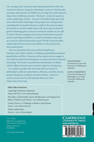 The 'sorting society' expresses what many people believe will be the outcome of advances in genetic technology: a society in which many characteristics of children are no longer the result of genetic chance but of deliberate selection. This book focuses on the ethical, legal and social issues raised by this technology. Is the prospect of a sorting society something that we should welcome or deplore? Do concerns about how parents or societies might exercise the choice given to them by genetic technology give us reason to restrain its creation or use, and if so how? Would a sorting society increase the freedom of parents and the well being of children, or would it undermine values that are central to a liberal democratic society? These are questions of the most profound significance, bearing on the world in which our children, grandchildren, and great-grandchildren will live.