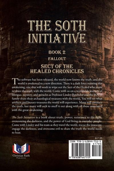 The Soth Initiative Book 2 The Sect of the Heald Chronicles: The software has been released, the world now knows the truth, and the world is awakened to a new direction. There is a dark force resisting this awakening, one that will work to wipe out the Sect of the Healed who yearn to share the truth with the world. Come with us on a worldwide journey of intrigue, mystery, and miracles as Professor Lindey Batchelor and the SOTH family share their archaeological treasures with the world. You will see what artifacts and literary treasures the world will experience. Many will embrace the truth, but many will seek to snuff it out along with all those associated with the great awakening. The Soth Initiative is a book about truth, power, resistance to the light, overcoming the darkness, and the power of God living in everyday people. Come with Lindey and his team as they travel the world, rescue the innocent, engage the darkness, and overcome evil to share the truth the world needs to hear.