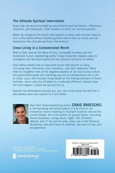 How to overcome the three forces that work against us daily: toxic influences, toxic emotions, and toxic behaviors. Why do so many well-meaning Christians take one spiritual step forward, then slide back two? Why do we long for more of God in our lives and yet feel further and further away from him? What's holding us back from growing in this relationship that we claim is our main priority? Every day we are surrounded by secondhand spiritual toxins--influences, emotions, and behaviors--that threaten to draw us away from Jesus Christ. But when we recognize the toxins that assault us and discover ways to live in this world without absorbing them into our souls, we can experience genuine spiritual growth. With a fresh look at the Word of God, vulnerable honesty, and his trademark humor, bestselling author of Winning the War in Your Mind Craig Groeschel unpacks ways to strengthen your spiritual health and your positive influence on others. He will help you to: Tell yourself the truth Overcome false beliefs Neutralize your anger Stop comparing yourself to others Unlock the chokehold of fear Toss out legalism More than an insightful look at the negative aspects of our day-to-day culture, this grace-filled guide will challenge you out of complacency and into a life of clean, pure, and focused living based on the freeing standard of God's holiness.