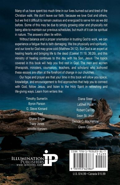 Many of us have spent too much time in our lives burned out and tired of the Christian walk. We don't leave our faith, because we love God and others, but we find it difficult to remain zealous and energized to serve him as we did before. Some of this may be due to simply growing older and physically not being able to maintain our previous schedules, but I think much of it is spiritual in nature. The answers often lie within. Without balance and a proper orientation in trusting God to work, we can experience a fatigue that is faith damaging. We tire physically and spiritually, and our love for God may grow cold (Matthew 24:12). But, God is an expert at healing hearts and bringing life to the dead (Ezekiel 11:19, 36:26), and this ministry of healing continues to this day with his Son, Jesus. The topics covered will help you find rest in God. The men and women (therapists, ministers, counselors, teachers, and scholars) who authored these essays are often at the forefront of change in our churches. Our hope and prayer are that your time in this book will allow you space, knowledge, and encouragement to find approaches that help you to connect with God, follow Jesus, and listen to the Holy Spirit in refreshing and life-giving ways.
