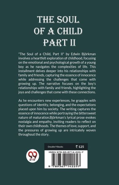 ""The Soul of a Child, Part II"" by Edwin Björkman involves a heartfelt exploration of childhood, focusing on the emotional and psychological growth of a young boy as he navigates the complexities of life. This installment delves deeper into his relationships with family and friends, capturing the essence of innocence while addressing the challenges that come with growing up. The narrative focuses on the boy's relationships with family and friends, highlighting the joys and challenges that come with these connections. As he encounters new experiences, he grapples with questions of identity, belonging, and the expectations placed upon him by society. The writing captures the essence of innocence while portraying the bittersweet nature of maturation. Björkman's lyrical prose evokes nostalgia and empathy, inviting readers to reflect on their own childhoods. The themes of love, support, and the pressures of growing up are intricately woven throughout the story.