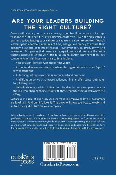 Culture will exist in your company one way or another. Either you can take steps to shape and influence it, or it will develop on its own. Given the high stakes in business today, leaving your culture to chance is a risky proposition. Today's leaders spend enormous amounts of time, energy, and money to ensure their company's success in terms of finances, customer service, productivity, and innovation. Companies that possess a high-performing culture have the inside track to achieve all of this with little to no capital outlay. They have these five components of a high-performance culture in place: A solid vision/purpose with supporting values ...An outward focus on customers, where the organization acts as an "agent" for the customer ... Autonomy/entrepreneurship is encouraged and practiced ... Ambitious unrest - a bias toward action, not in the selfish sense, but rather to get things done ... Individualism, yet with collaboration. Leaders in these companies realize the ROI from shaping their culture with these characteristics is well worth the effort. Culture is the soul of business. Leaders make it. Employees love it. Customers are loyal to it. And profit follows it. This book will show you how to create and sustain the right culture for your company.