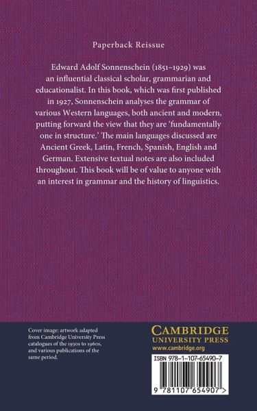 Edward Adolf Sonnenschein (1851-1929) was an influential classical scholar, grammarian and educationalist. In this book, which was first published in 1927, Sonnenschein analyses the grammar of various Western languages, both ancient and modern, putting forward the view that they are 'fundamentally one in structure'. The main languages discussed are Ancient Greek, Latin, French, Spanish, English and German. Extensive textual notes are also included throughout. This book will be of value to anyone with an interest in grammar and the history of linguistics.