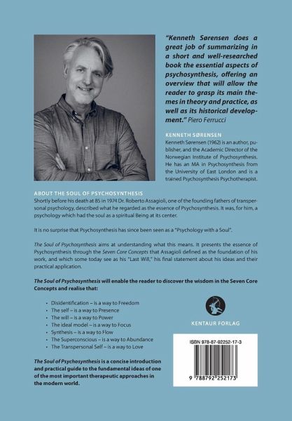 Reviews "Assagioli's psychosynthesis spreads far and wide. It is ambitious in scope and subject matter. For this reason it may be hard at times to understand its essence - with the risk of being lost in the details. Kenneth Sørensen does a great job of summarizing in a short and well-researched book the essential aspects of psychosynthesis, offering an overview that will allow the reader to grasp its main themes in theory and practice, as well as its historical development." Piero Ferrucci, is an international bestselling author, a psychotherapist and philosopher "We all agree that our world is entering a new epoch: together with the disruption of previuos life forms, not suitable any more to grant human beings a joyful and creative life, we can recognize glimpses of new and more suitable models. Kenneth introduces in this book the seven Pillars of Psychosynthesis, which allow it to be an outpost among the instruments for a radical reconstruction of life on the Planet. The way he does it, deep and clear at the same time, is a contribution not only to a psychological vision, but to the reconstruction of life on our Planet. Thank you Kenneth!" Marina Bernardi ( President of the Community of Living Ethics, Italy, and co-founder of Science of Group Work initiative) "Psychosynthesis is like a tree that keeps growing and producing new leaves and fruits with each passing year. The health of any tree depends on the quality and depth of its roots and Kenneth Sorensen provides us with an excellent source of nourishment to stimulate and revitalize the roots of Psychosynthesis formed by Assagioli's seven core concepts. I appreciate the clear and compelling presentation of the soul of Psychosynthesis and this book reassures and confirms that the spirit of the new psychology is truly alive and well." Michael Lindfield (Co-founder, Science of Group Work Initiative and President, Meditation Mount, Ojai California) "Kenneth Sørensen is a Psychosynthesis Psychotherapist, Spiritual Teacher and Author and the ideal person to write precisely this book, The Soul of Psychosynthesis. Here he brings us the essence of a spiritual, therapeutic and practical approach to life. He has written a rare and extremely competent book that offers a wealth and depth of detail, as well as crystal clear insights about Assagioli's Transpersonal Psychology and synthetic therapy. Simply put, it's about the essential qualities of freedom, presence, power, focus, flow, abundance and love. Yet at the same time we are introduced to a diverse craft, an art of living and transformative path of development for the individual. I highly recommend this jewel of a book to anyone who feels attracted to deep personal growth, psychotherapy and spirituality, and who wants to know about Psychosynthesis!" Søren Hauge, spiritual teacher and author