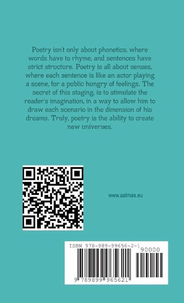 Poetry isn't only about phonetics, where words have to rhyme, and sentences have strict structure. Poetry is all about senses, where each sentence is like an actor playing a scene, for a public hungry of feelings. The secret of this staging, is to stimulate the reader's imagination, in a way to allow him to draw each scenario in the dimension of his dreams. Truly, poetry is the ability to create new universes.