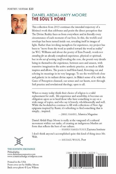 This collection from 2013 continues the intended trajectory of a lifetime's work that celebrates and posits the direct perception that The Divine Reality faces us from everywhere and in literally every circumstance of each moment of our lives. In this, the world's soul envelope has been turned inside out, revealing itself in images of light. Rather than invoking metaphors for experience, my project has been to "move from the word as symbol toward the word as reality" (as W.C. Williams said about the poetry of Ezra Pound), words not standing for an already completed experience, physical or spiritual, but in the act of writing itself revealing the core, the poem's very details being in themselves the experience, between seen and unseen, with transitive imagination the active aesthetic practice, as much as Allah inspires and allows.