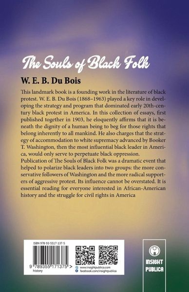 This landmark book is a founding work in the literature of black protest. W. E. B. Du Bois (1868-1963) played a key role in developing the strategy and program that dominated early 20th-century black protest in America. In this collection of essays, first published together in 1903, he eloquently affirms that it is beneath the dignity of a human being to beg for those rights that belong inherently to all mankind. He also charges that the strategy of accommodation to white supremacy advanced by Booker T. Washington, then the most influential black leader in America, would only serve to perpetuate black oppression. Publication of The Souls of Black Folk was a dramatic event that helped to polarize black leaders into two groups: the more conservative followers of Washington and the more radical supporters of aggressive protest. Its influence cannot be overstated. It is essential reading for everyone interested in African-American history and the struggle for civil rights in America