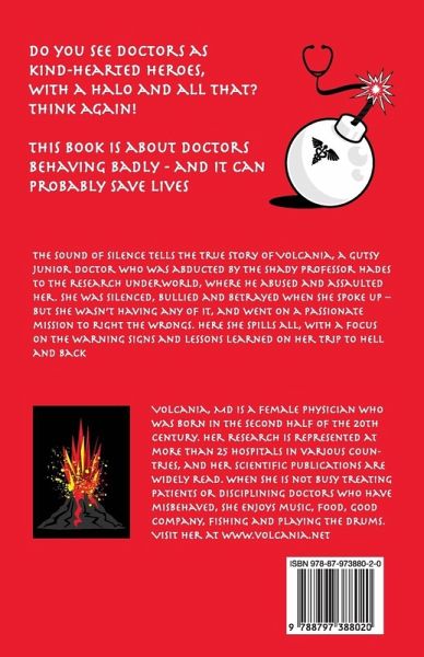 Do you see doctors as kind-hearted heroes, with a halo and all that? Think again!! The Sound of Silence tells the true story of Volcania, a gutsy junior doctor who was abducted by the shady Professor Hades to the research underworld, where he abused and assaulted her. Volcania was silenced, bullied and betrayed when she spoke up - but she wasn't having any of it and went on a passionate mission to right the wrongs. Her collegues were not too thrilled about that, leaving her life and career on the line. This book is about: 1. How to groom another doctor into doing (almost) anything 2. How not to fall for any of that crap 3. Surgery: how to handle backstabbing and blows in the face 4. Psychiatry: how smoke psychopaths out of their hole 5. Medicine: the magic sauce that gets you back on track despite it all 6. The medical hierarchy a.k.a. the Good, the Bad, & the Ugly 7. How to handle sexual harassment & bullying in the workplace 8. How to safely navigte and stay sane within the medical world 9. 260 pages long, sharp, funny and blessedly free of self-pity The Sound of Silence allows the reader a rare peek at the soul-destroying abuse that so often goes on behind closed doors of the noble medical world. Physicians are notoriously secretive about the ailments within their own culture, but here a rumbling volcano spills all in a refreshingly honest and eye-opening account of deception, greed, cruelty and survival within one of the most respected professions of all. Along the way Volcania explains what the warning signs and lessons learned were, with a focus on what helped and did not help on her trip to hell and back. This sincere bullet is a must-read for all medical students, doctors, researchers, academics, psychologists and anyone who has ever been sexually harassed or bullied in the workplace, as well as potential future victims. The author presents new solutions to old problems in a suspension-laden and self-ironic way, while steering clear of self-pity. Want to know how to get out of hell and get well? Volcania will tell. This book is about doctors behaving badly - and it can probably save lives. Volcania, MD is a female physician who was born in the second half of the 20th century. Her research is represented at more than 25 hospitals in various countries, and her scientific publications are widely read. When she is not busy treating patients or disciplining doctors who have misbehaved, she enjoys music, food, good company, fishing and playing the drums. Visit her at www.volcania.net.