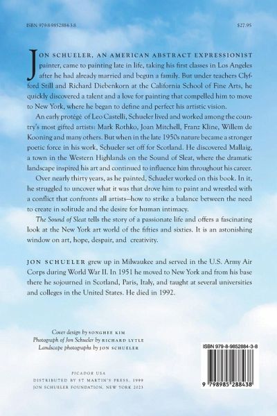 The Sound of Sleat is an intensely personal record of the forces and events that shaped Jon Schueler (1916-1992) as an artist. At the same time, it evokes with great resonance the various cultural, historical and geographical contexts that informed his life: from pre-war Midwestern America to the Western Highlands of Scotland where, from his studio, he could look across the Sound of Sleat to Skye and the other islands of the Inner Hebrides, a vista that allowed him to strike the delicate balance between the observation of nature and abstract forms, which is the mystery and power of Schueler's paintings. The book recounts his dramatic childhood in Milwaukee and traumatic war years in Britain as a B17 navigator; his decision to study painting with Clyfford Still at the California School of Fine Arts; his arrival in New York in 1951 and his introduction to Rothko, Newman and Kline; his turbulent experiences with marriages and women; money and the lack of it; and the tremendous need to return continually to Scotland where he found in the Sound of Sleat the images essential to his painting.The reader in drawn in through the immediacy of the journal entries; the quality of his longer reflections on memory, the past, and the act of painting; and the evocative power of his descriptions of the sea and the sky. Equally compelling are the extraordinary series of letters to lovers and art dealers (Leo Castelli, Ben Heller) that reveal the verve and intelligence with which Schueler engages others through language and the depth of his engagement. What is perhaps most striking throughout is the urgency to tell the story, to search out a truth that is always difficult, often painful, and sometimes damning in its evidence of failure.Although Schueler was first and foremost an artist, he devoted himself to his writing with the same passion, sense of struggle and drive towards experimentation that he brought to his painting. Rather than beginning in childhood and then proceeding onwards in a conventional way, the book's chronology is based on the moment of writing, so events may be presented once, or they may be divulged piecemeal as the years go by. This technique adds an element of suspense to the narrative-- as in his efforts to come to terms with his almost unbearable air force experiences, his search for a woman loved during World War II, and his attempt to discover the mother who died just after he was born.What continuously lures the reader on is both the unusual glimpses of the intricate maneuverings of the art scene and the fascinating figure of Schueler himself. Ironic and irreverent, alternately acerbic and lyrical, deeply spiritual and unabashedly erotic, he offers us both humor and moments of revealing psychological insight.