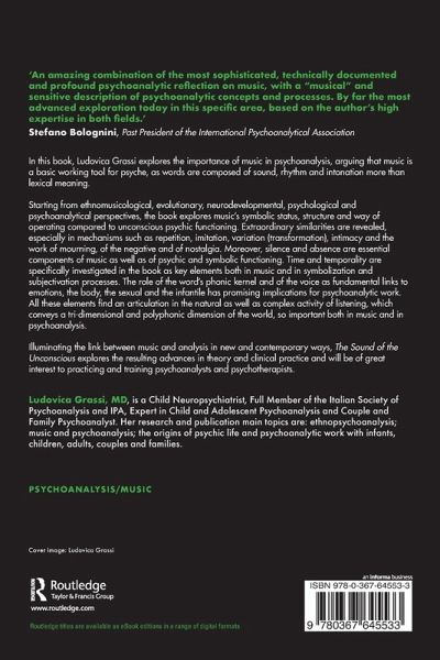 In this book, Ludovica Grassi explores the importance of music in psychoanalysis, arguing that music is a basic working tool for psyche, as words are composed of sound, rhythm and intonation more than lexical meaning. Starting from ethnomusicological, evolutionary, neurodevelopmental, psychological and psychoanalytical perspectives, the book explores music's symbolic status, structure and way of operating compared to unconscious psychic functioning. Extraordinary similarities are revealed, especially in mechanisms such as repetition, imitation, variation (transformation), intimacy and the work of mourning, of the negative and of nostalgia. Moreover, silence and absence are essential components of music as well as of psychic and symbolic functioning. Time and temporality are specifically investigated in the book as key elements both in music and in symbolization and subjectivation processes. The role of the word's phonic kernel and of the voice as fundamental links to emotions, the body, the sexual and the infantile has promising implications for psychoanalytic work. All these elements find an articulation in the natural as well as complex activity of listening, which conveys a tri-dimensional and polyphonic dimension of the world, so important both in music and in psychoanalysis. Illuminating the link between music and analysis in new and contemporary ways, The Sound of the Unconscious explores the resulting advances in theory and clinical practice and will be of great interest to practicing and training psychoanalysts and psychotherapists.