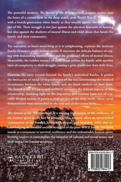 Unveiling the Struggles of a Cotton Farming Family in Post-WWII South: A Tale of Mental Illness, Child Abuse, and Racial Co-dependency amidst Hardship. In the heart-wrenching memoir, The Sound of the Whippoorwill, readers are transported to a cotton farm in the deep south, post World War II, where a fourth-generation white family grapples with the hardships of life. This is not just a story of survival and endurance, but also a tale of overcoming the trials of mental illness and child abuse that plague the family and the community at large. The narrative reveals the intricate dynamics of a family under severe stress, striving to balance the rigors of manual labor on the cotton farm with the devastating impact of mental illness. Simultaneously, it exposes the darkness of child abuse lurking within the family, casting a shadow on their everyday existence. The author skillfully brings to light the struggle of a family in turmoil, while also addressing the societal issues of the time. Yet, the narrative goes beyond the family's personal battles. It delves into the complex racial co-dependencies of the era, examining the uneasy relationship between the white family and the black workers on their farm. The book navigates the nuances of this relationship with sensitivity, highlighting the inequities and tensions born out of a racially segregated society. It presents a stark picture of the deep south, where racial lines were drawn not just in the sand, but in the very soil of the cotton fields. The Sound of the Whippoorwill is a poignant exploration of the human spirit's resilience in the face of adversity. It presents a raw and unflinching look at the family's struggle through hardship and despair, while also acknowledging the broader societal struggles of the post-WWII South. The book is a compelling account of survival, resilience, and the indomitable human spirit. It invites readers to reflect on the dynamics of culture, social issues, and the human condition. This memoir will resonate with readers who are interested in understanding the profound impact of social, cultural, and personal dynamics on human lives. It is a powerful reminder of our shared history and the enduring strength of the human spirit in overcoming adversity.