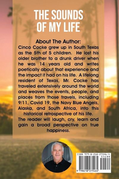 Cinco Cocke grew up in South Texas as the fifth of five children. He lost his older brother to a drunk driver when he was 14 years old and writes poetically about that experience and its impact on his life. A lifelong resident of Texas, Mr. Cocke has traveled extensively around the world, and weaves the people and places from those travels, including 9/11, Covid19, the Navy Blue Angels, Alaska and South Africa, into this historical retrospective of his life.