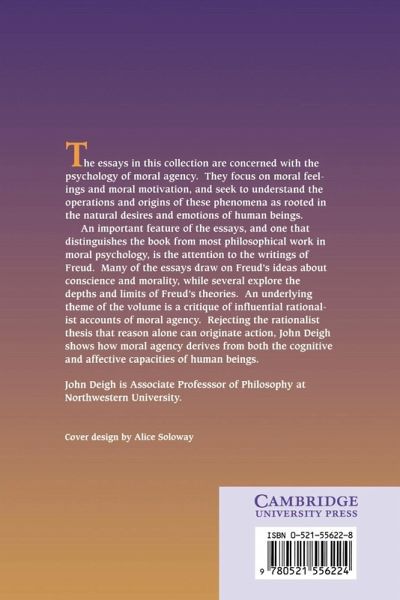 The essays in this collection are concerned with the psychology of moral agency. They focus on moral feelings and moral motivation, and seek to understand the operations and origins of these phenomena as rooted in the natural desires and emotions of human beings. An important feature of the essays, and one that distinguishes the book from most philosophical work in moral psychology, is the attention to the writings of Freud. Many of the essays draw on Freud's ideas about conscience and morality, while several explore the depths and limits of Freud's theories. An underlying theme of the volume is a critique of influential rationalist accounts of moral agency. John Deigh shows that one can subject the principles of morality to rational inquiry without thereby holding that reason alone can originate action.