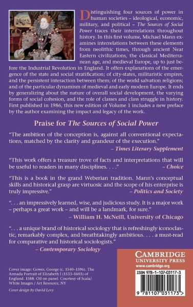 Distinguishing four sources of power in human societies - ideological, economic, military and political - The Sources of Social Power traces their interrelations throughout human history. In this first volume, Michael Mann examines interrelations between these elements from neolithic times, through ancient Near Eastern civilizations, the classical Mediterranean age and medieval Europe, up to just before the Industrial Revolution in England. It offers explanations of the emergence of the state and social stratification; of city-states, militaristic empires and the persistent interaction between them; of the world salvation religions; and of the particular dynamism of medieval and early modern Europe. It ends by generalizing about the nature of overall social development, the varying forms of social cohesion and the role of classes and class struggle in history. First published in 1986, this new edition of Volume 1 includes a new preface by the author examining the impact and legacy of the work.