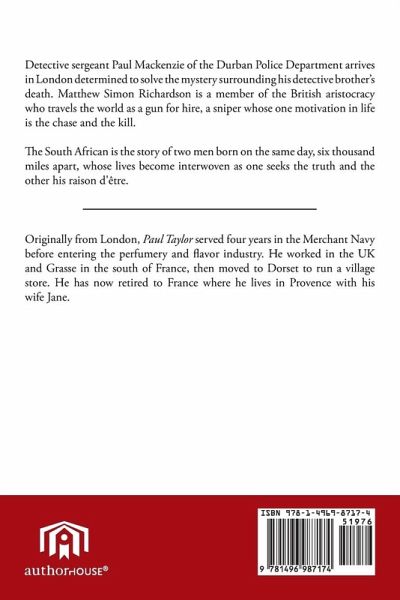 Detective sergeant Paul Mackenzie of the Durban Police Department arrives in London determined to solve the mystery surrounding his detective brother’s death. Matthew Simon Richardson is a member of the British aristocracy who travels the world as a gun for hire, a sniper whose one motivation in life is the chase and the kill. The South African is the story of two men born on the same day, six thousand miles apart, whose lives become interwoven as one seeks the truth and the other his raison d'être.