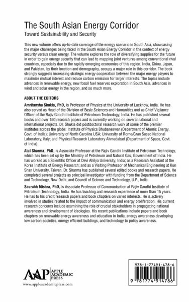 Up-to-date coverage of the energy scenario in the South Asian Energy Corridor, discussing energy security versus clean energy. It explores the role of diversifying supplies for the future to gain energy security that can lead to mapping joint ventures among conventional rival countries, especially India, China, Japan, and Pakistan.