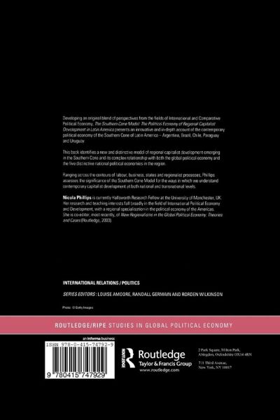 Developing an original blend of perspectives from the fields of international and comparative political economy, this book presents an innovative and in-depth account of the contemporary political economy of the southern cone of Latin America: Argentina, Brazil, Chile, Paraguay and Uruguay. It identifies a new and distinctive model of regional capitalist development emerging in the southern cone and a complex relationship with both the global political economy and the five distinctive national political economies in the region. Ranging across the contours of labour, business, states and regionalist processes, Phillips assesses the significance of the Southern Cone Model for the ways in which we understand contemporary capitalist development at both national and transnational levels.