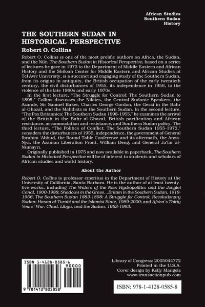 Robert O. Collins is one of the most prolific authors on Africa, the Sudan, and the Nile. The Southern Sudan in Historical Perspective, based on a series of lectures he gave at Tel Aviv University, is a succinct and engaging study of the Southern Sudan, from its origins in antiquity, the British occupation of the early twentieth century, the civil disturbances of 1955, its independence in 1956, to the violence of the late 1960s and early 1970s.